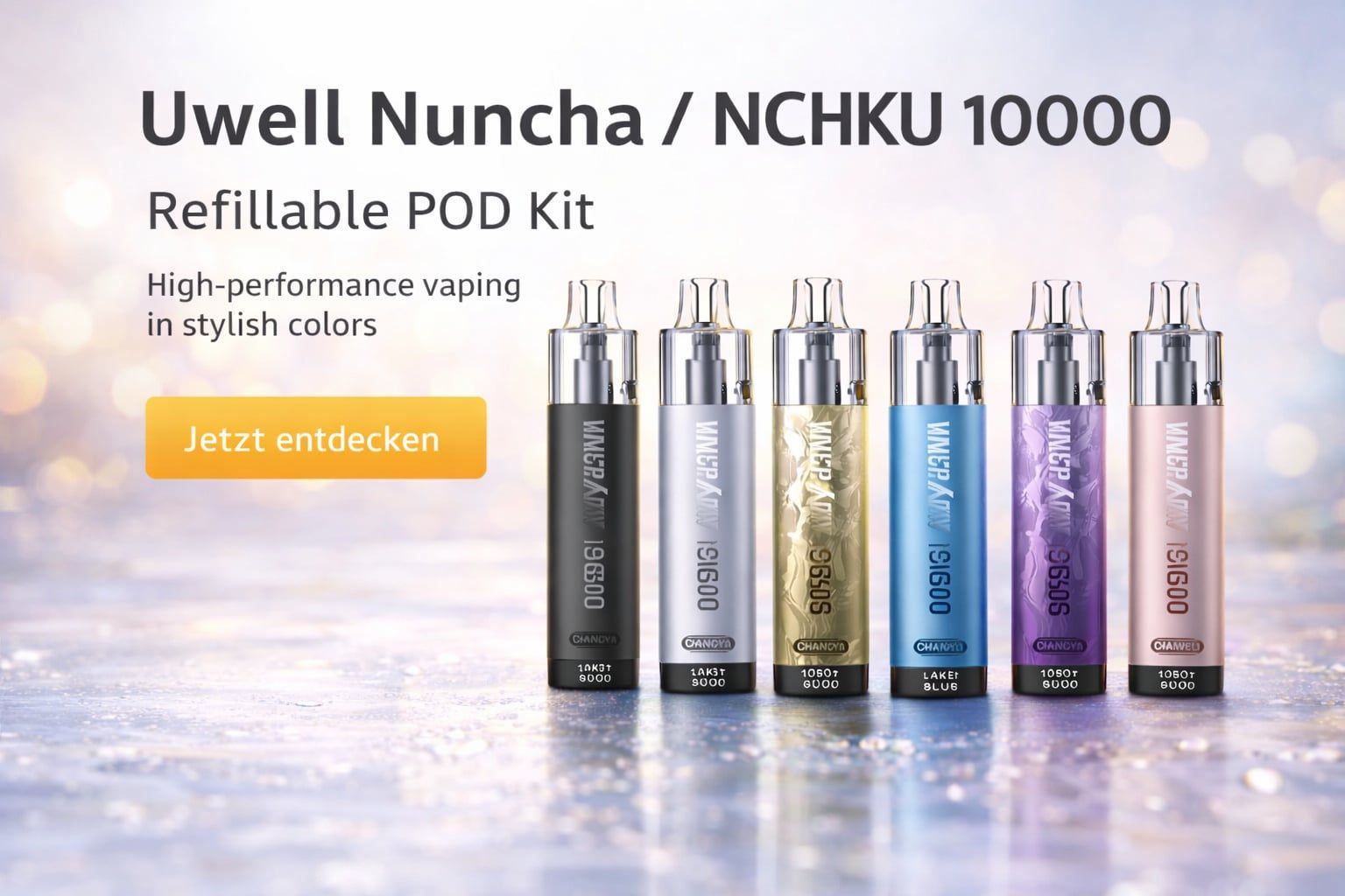 Ab sofort Online 📦 & Offline 🛍️ erhältlich Mit dem Uwell Nuncha / NCHKU 10000 Refillable Pod Kit bringt Uwell ein durchdachtes Pod-System auf den Markt, das speziell für anspruchsvolle MTL-Dampfer entwickelt wurde.Im Mittelpunkt steht das außergewöhnlich große Tankvolumen von 10 ml, das deutlich längere Nutzungszeiten ermöglicht und häufiges Nachfüllen überflüssig macht.Gerade für unterwegs oder … Weiterlesen
