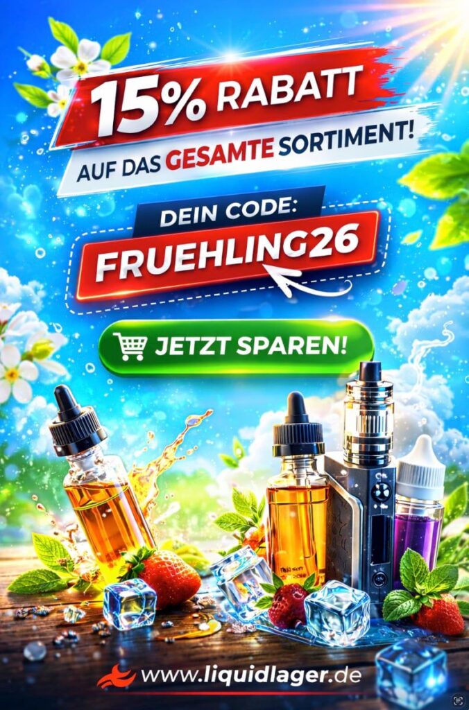 Mit unserer Frühlingsaktion erhaltet ihr auf das komplette Sortiment bei Liquidlager.de jetzt 15 % Rabatt ab einem Warenwert von 69,00 € (brutto inkl. MwSt.). Einfach im Warenkorb den Code FRUEHLING26 eingeben und sparen.