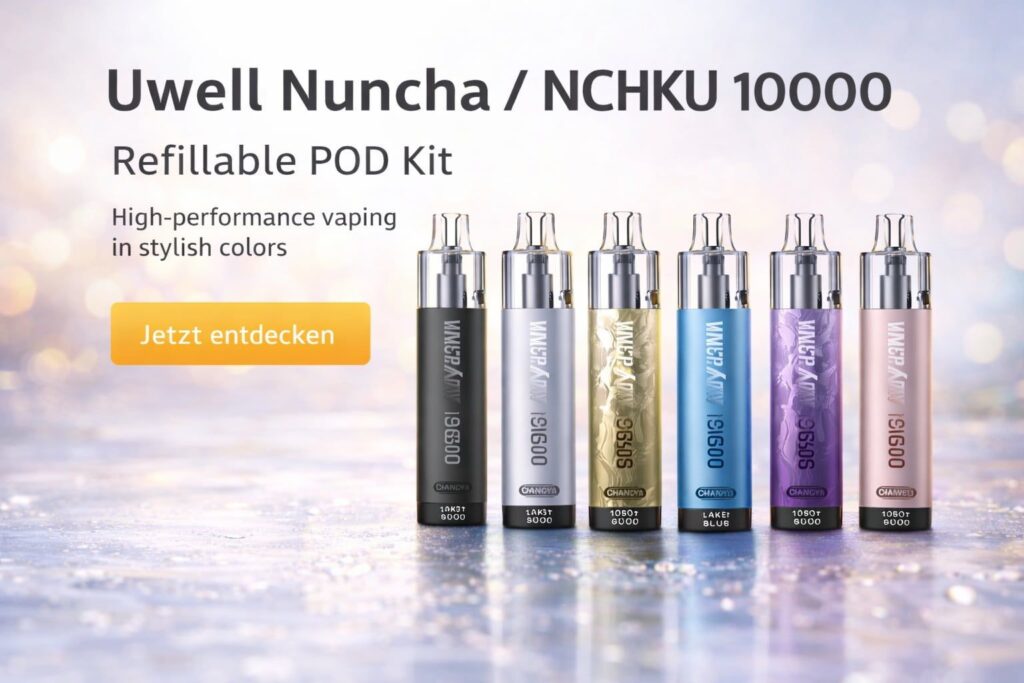 Mit dem Uwell Nuncha / NCHKU 10000 Refillable Pod Kit bringt Uwell ein durchdachtes Pod-System auf den Markt, das speziell für anspruchsvolle MTL-Dampfer entwickelt wurde.
