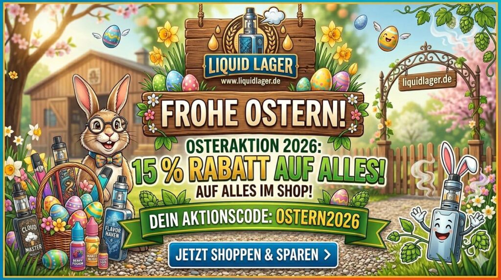 Jetzt eure Lieblingsliquids, Aromen, Pod-Systeme, Startersets, Coils, Basen und Neuheiten sichern – pünktlich zu Ostern mit starkem Rabatt und wie immer direkt bei Liquidlager.de.