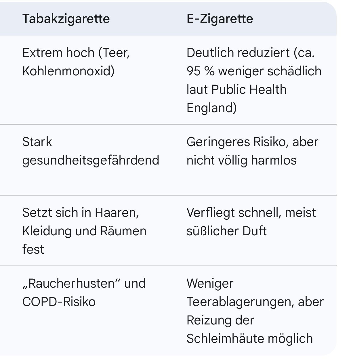 Niemand behauptet, dass E-Zigaretten „gesund“ sind – frische Bergluft ist immer besser. Aber im direkten Vergleich zeigt sich ein deutliches Bild:
